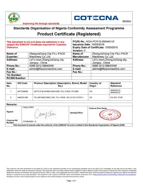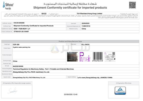 | Стандарт: | Shipment Conformity certificate |