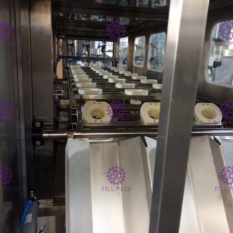 2После промывки промытые пустые бутылки транспортируются механизмом привода для промывки бутылок и падают на стойку для толкания бутылок.Бутылка толкающий цилиндр работает, чтобы толкать пустые бутылки в положение наполненияПосле того, как вода будет смыта, заполнитель начнет заполнять. (Время заполнения регулируется пользователем в соответствии с потребностями)