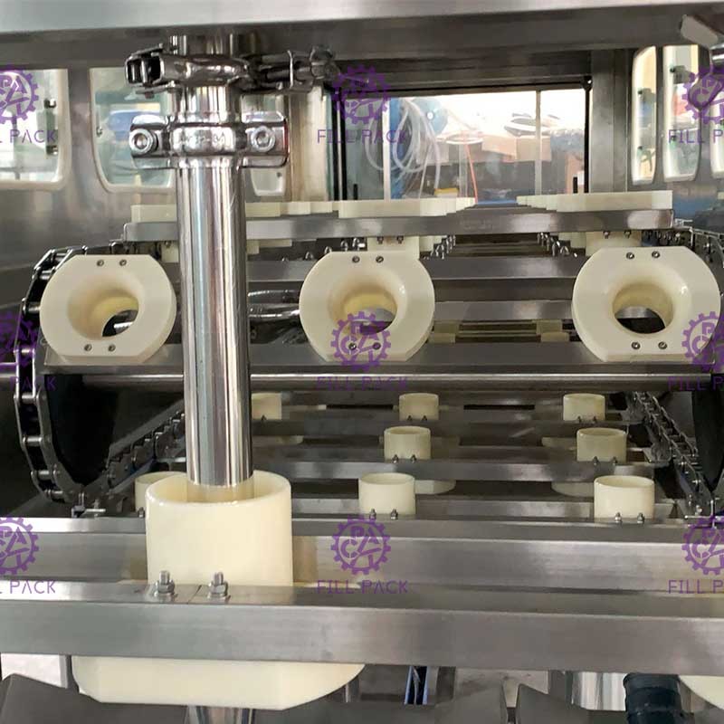 Очищенное ведро транспортируется цепным транспортировочным механизмом и падает на механизм ведра.и заполнение начинаетсяВремя наполнения может регулироваться в соответствии с скоростью потока наполнительного насоса.