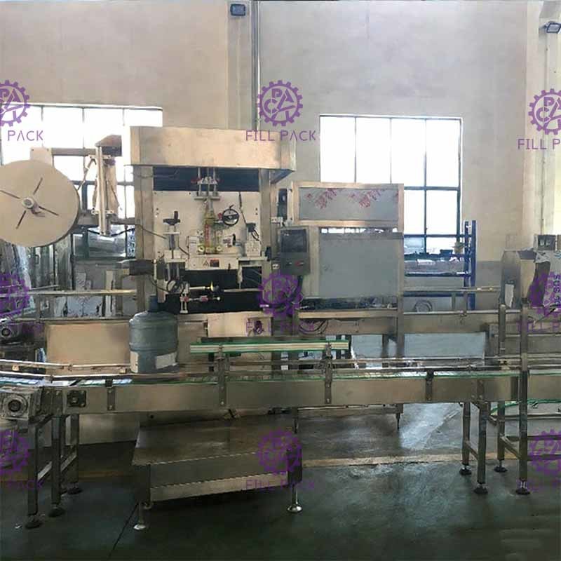 Линия маркировки ПВХ Gallon имеет функцию транспортировки бутылок, разделения бутылок, упаковки этикеток и их уменьшения, и она преследует высокую скорость, точное местоположение, меньше рабочих и идеальную упаковку.