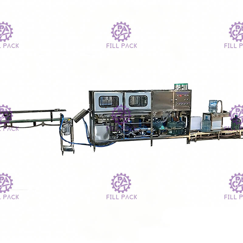 Вся линия розлива воды в бутыли включает в себя полуавтоматический декеппер и мойку, моноблочный ополаскиватель-наполнитель-укупорщик, роликовый конвейер, термоусадочный туннель для этикеток, контрольный свет, маркировочную машину с твердыми чернильными роликами
