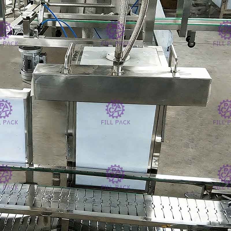 После мойки бутыли будут падать на угловую пластину с держателя бутыли под действием передаточной цепи с силой тяжести;
