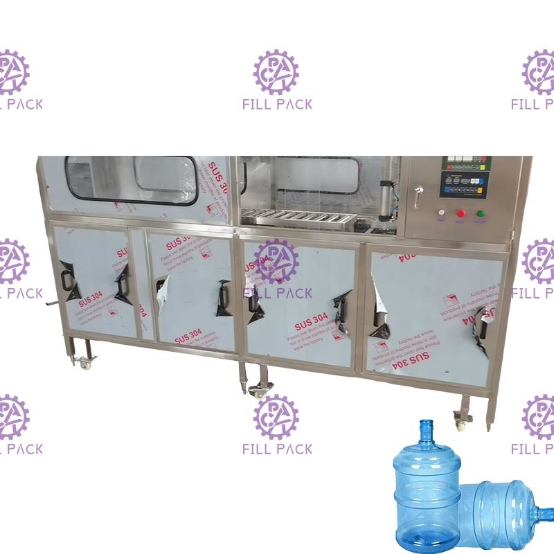 Эта установка розлива 5-галлонных бутылей объединяет функции мойки, наполнения и укупорки;