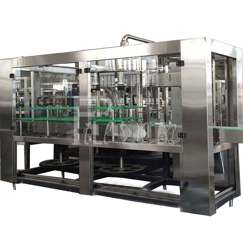 Бутылка - кормить колесом звезды в машину завалки бутылки, заполняя область для достижения отправной точки, бутылки ролика вдоль кулачка задержит, питательный клапан начала для заполнять бутылку, и с телом, etc. совместно одновременно вращая; бутылки приезжают зона загрузки конечного момента полива, достигнуть бутылки ролика кулачка с питательным клапаном низкого само-возврата близким, заполняя конец бочонка с колесом звезды отправленным из машины завалки бутылки.